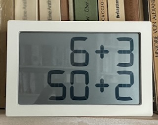 albert-clock 20. November 2025 320 × 253 Einer der besten Mathehelfer: ALBERT CLOCK Mini-Clock im Buchregal Diese Albert-Clock als Taschenformat steht in meinem Bücherregal.